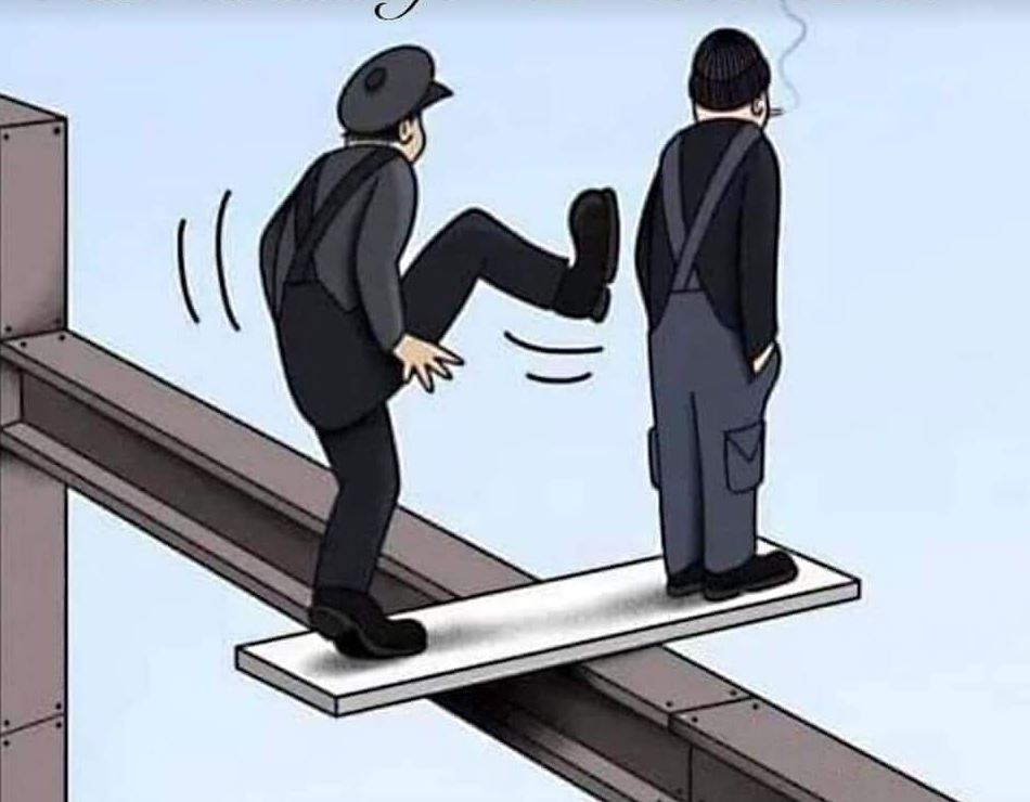 Dømmer vi andre får vi det rett i trynet, slik som bildet over viser. Konsekvensen av sparket fører til at begge faller ned, men den som spenner får planken mitt i trynet før nedturen starter.